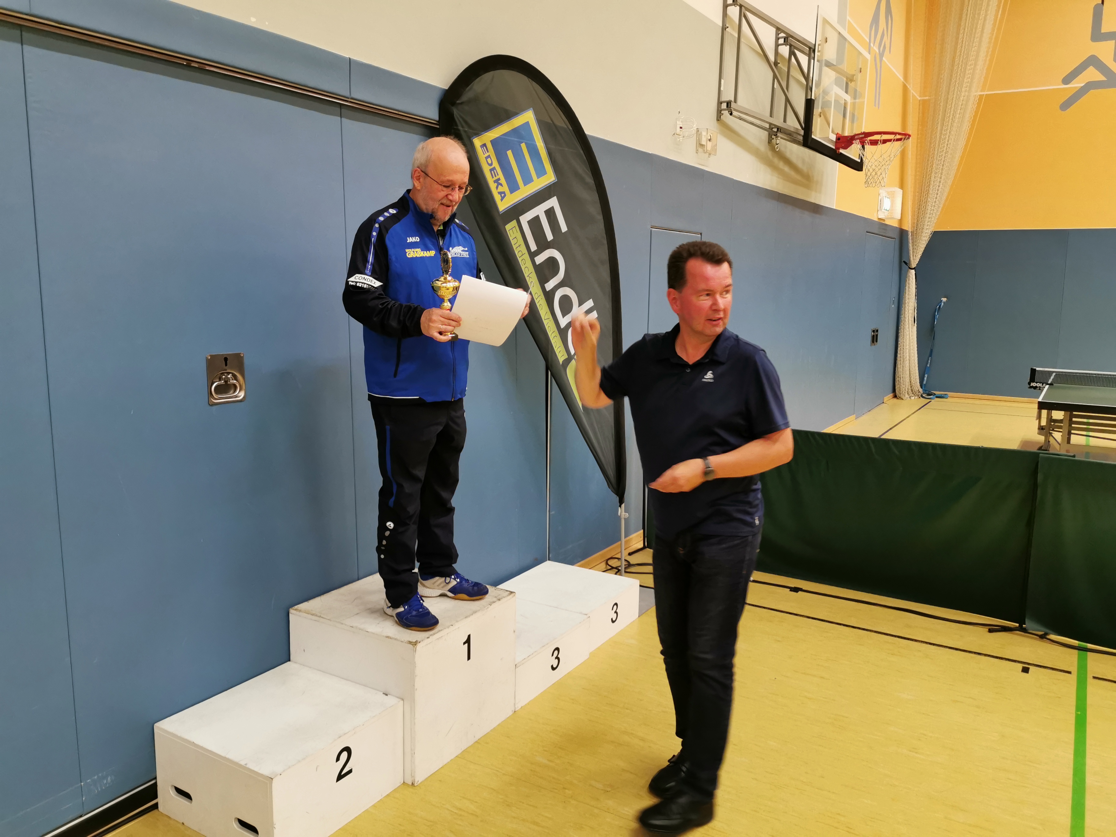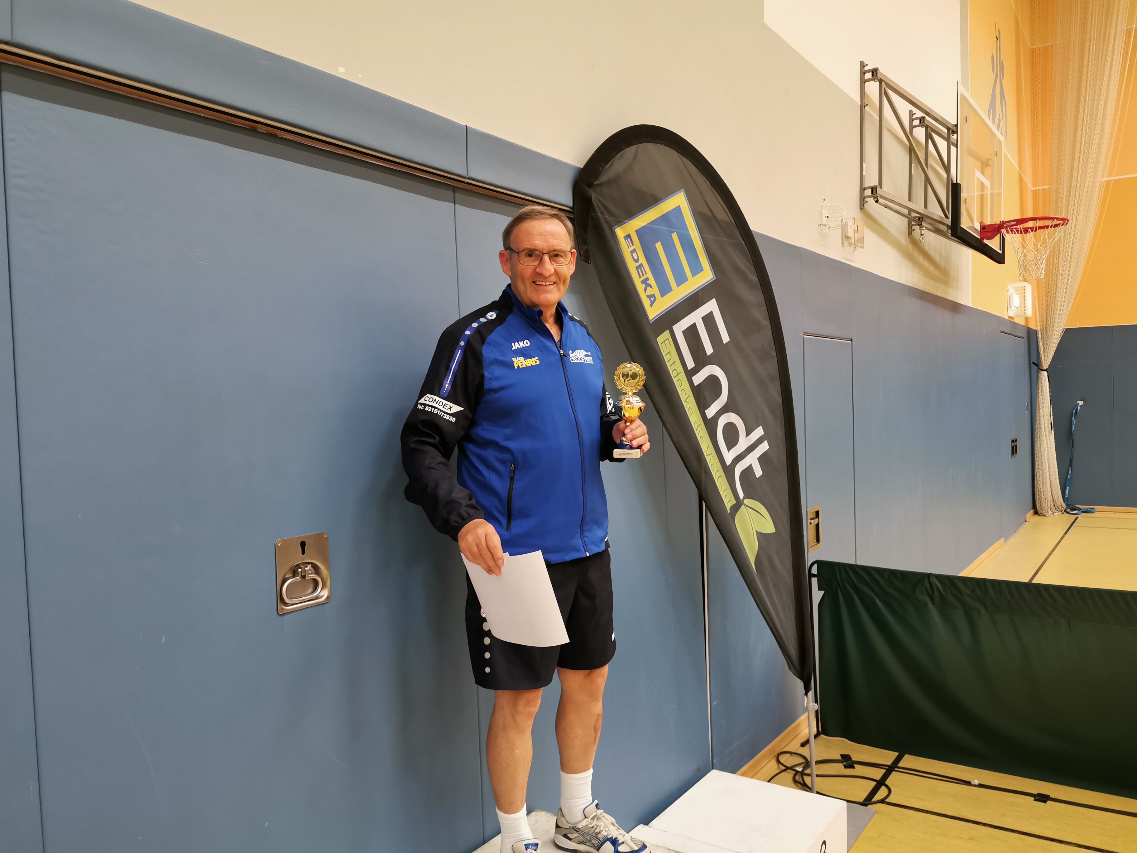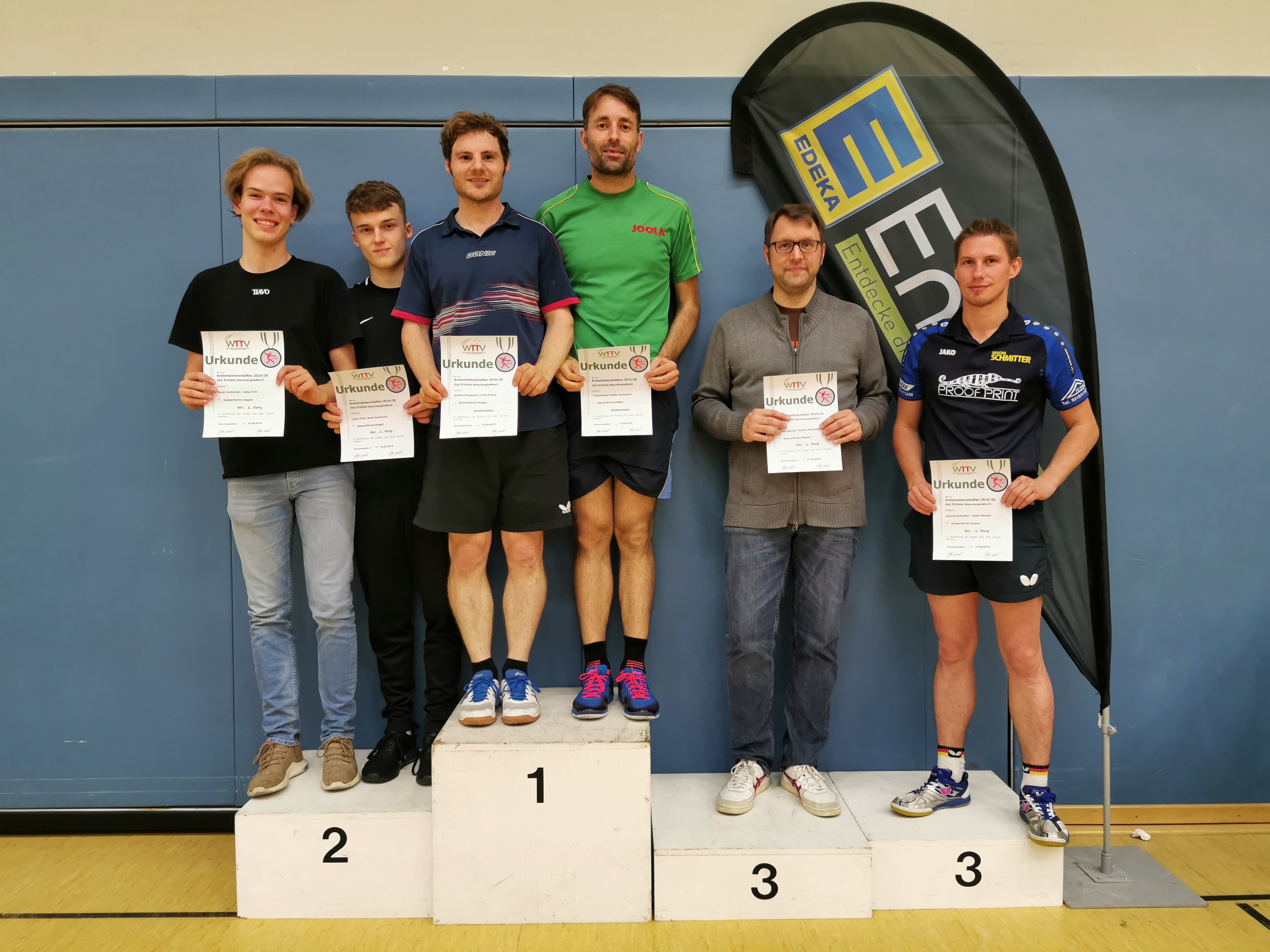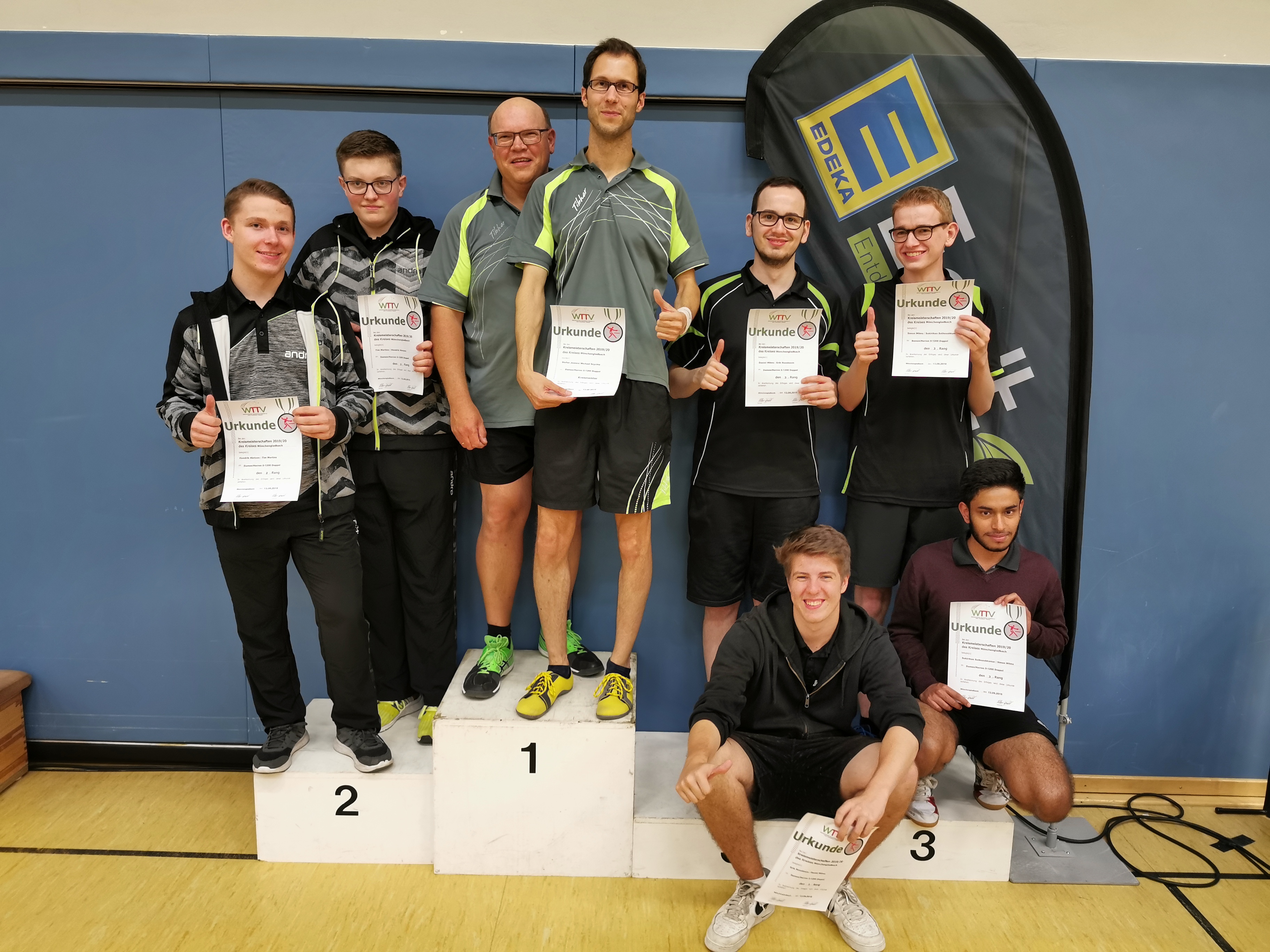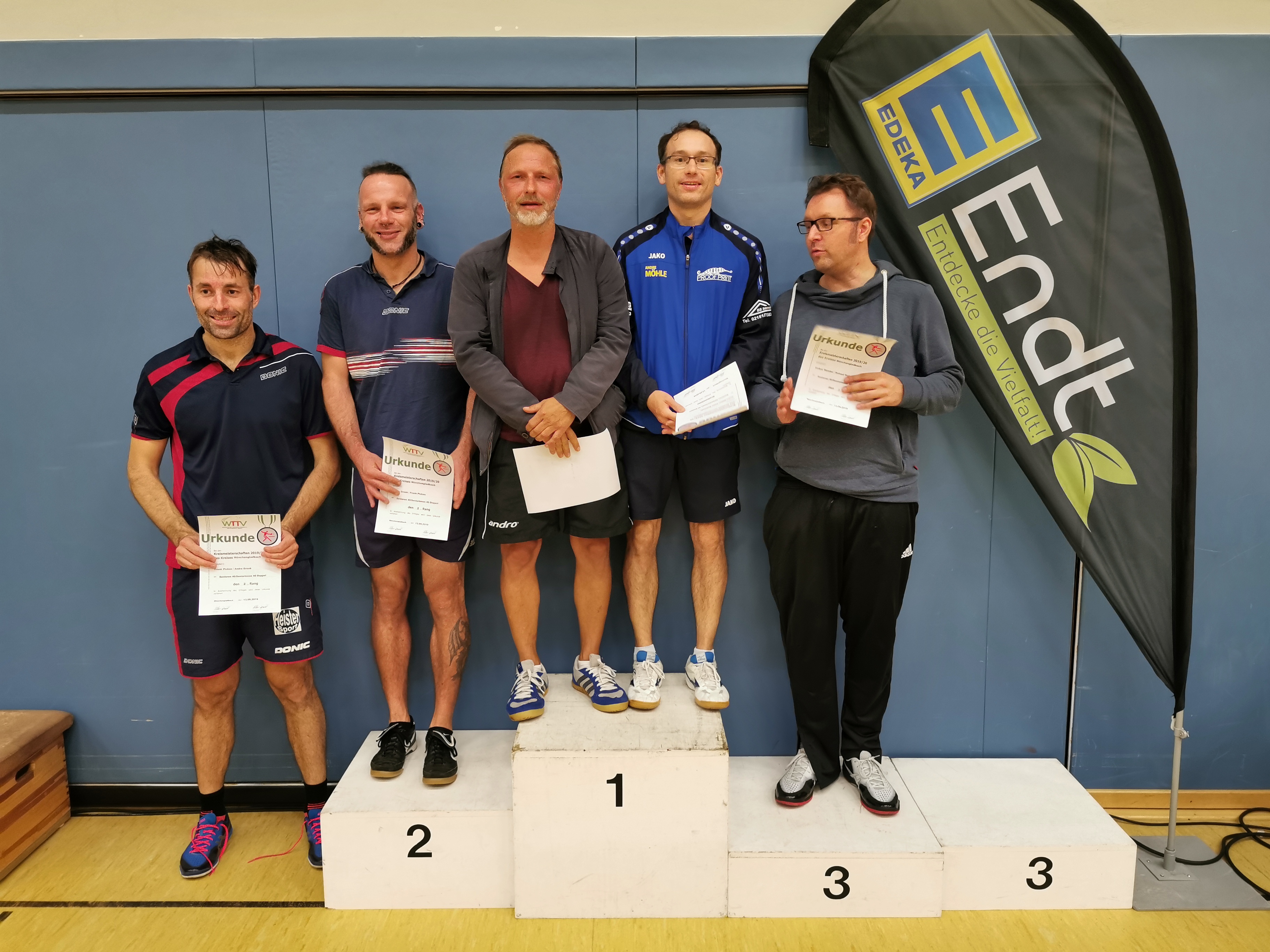 Dass der Kreismeister 2019 in der Herren-A-Klasse aus Erkelenz kommen könnte, war vor dem Turnier wohl eine wenig gewagte These. Immerhin hatte sich Seriensieger Frank Picken angekündigt, während Vorjahressieger Michael Rix (TuS Wickrath) fernblieb. Tatsächlich darf sich der TV Erkelenz freuen: Pokal und Titel sind zurück. Diesmal aber setzte sich in der Mönchengladbacher Turnhalle an der Luise-Vollmer-Straße nicht Picken durch, sondern der ETV-Spieler Steffen Hoeppener.