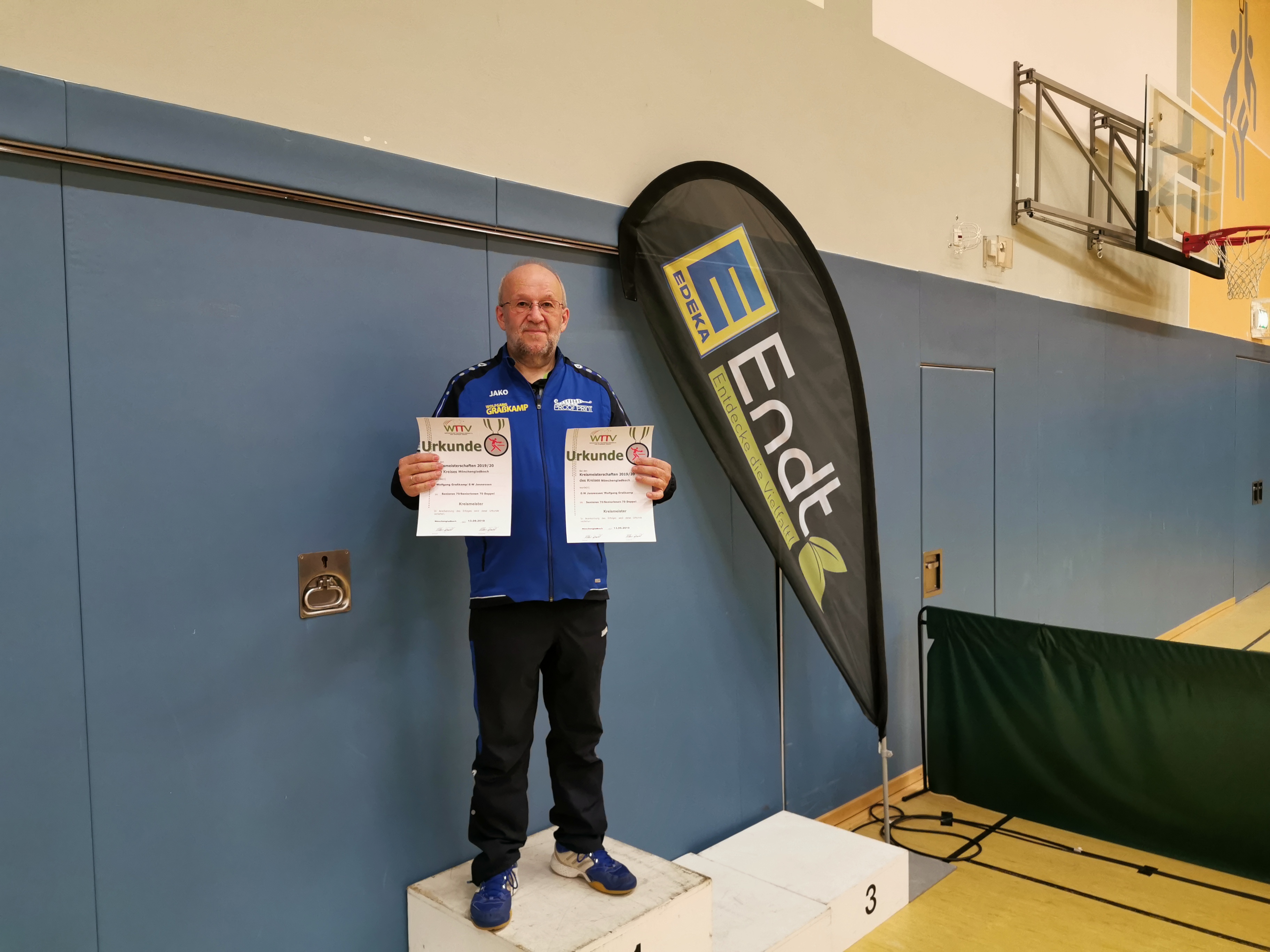 Dank des Mönchengladbachers Joachim Würz wurde die Konkurrenz der Senioren 70 keine vereinsinterne Angelegenheit des Ausrichters TuS Rheydt-Wetschewell: Von den sechs Startern waren gleich fünf des gastgebenden Vereins gemeldet. Am Verlauf konnte Würz allerdings wenig verändern, denn nach zwei Spielen war Schluss für ihn. Der Rheydt-Wetscheweller Wolfgang Graßkamp hingegen zeigte viermal Können, Cleverness und Nervenstärke: Mit vier Siegen, von denen er drei im Entscheidungssatz errang, gewann er den Kreismeistertitel in der 70er Konkurrenz. Bei den Senioren 80 siegte Werner Effertz (JTTC Hochneukirch), genau wie Graßkamp ebenfalls mit einer 4:0-Bilanz. Im Doppel holten die Brüder Walter und Herbert Göbels (TTC BW Kipshoven/TTC Arsbeck) sich Platz eins.