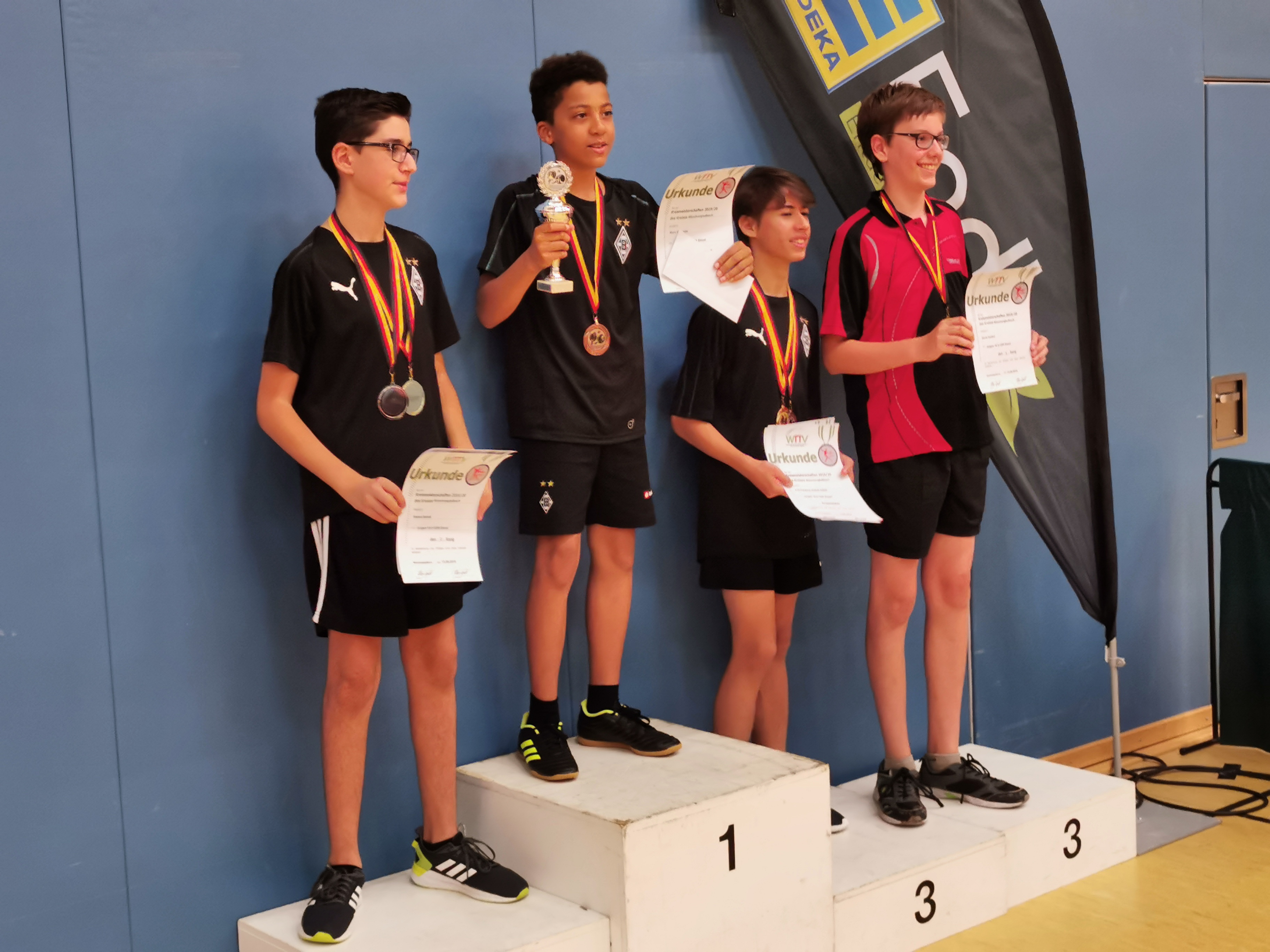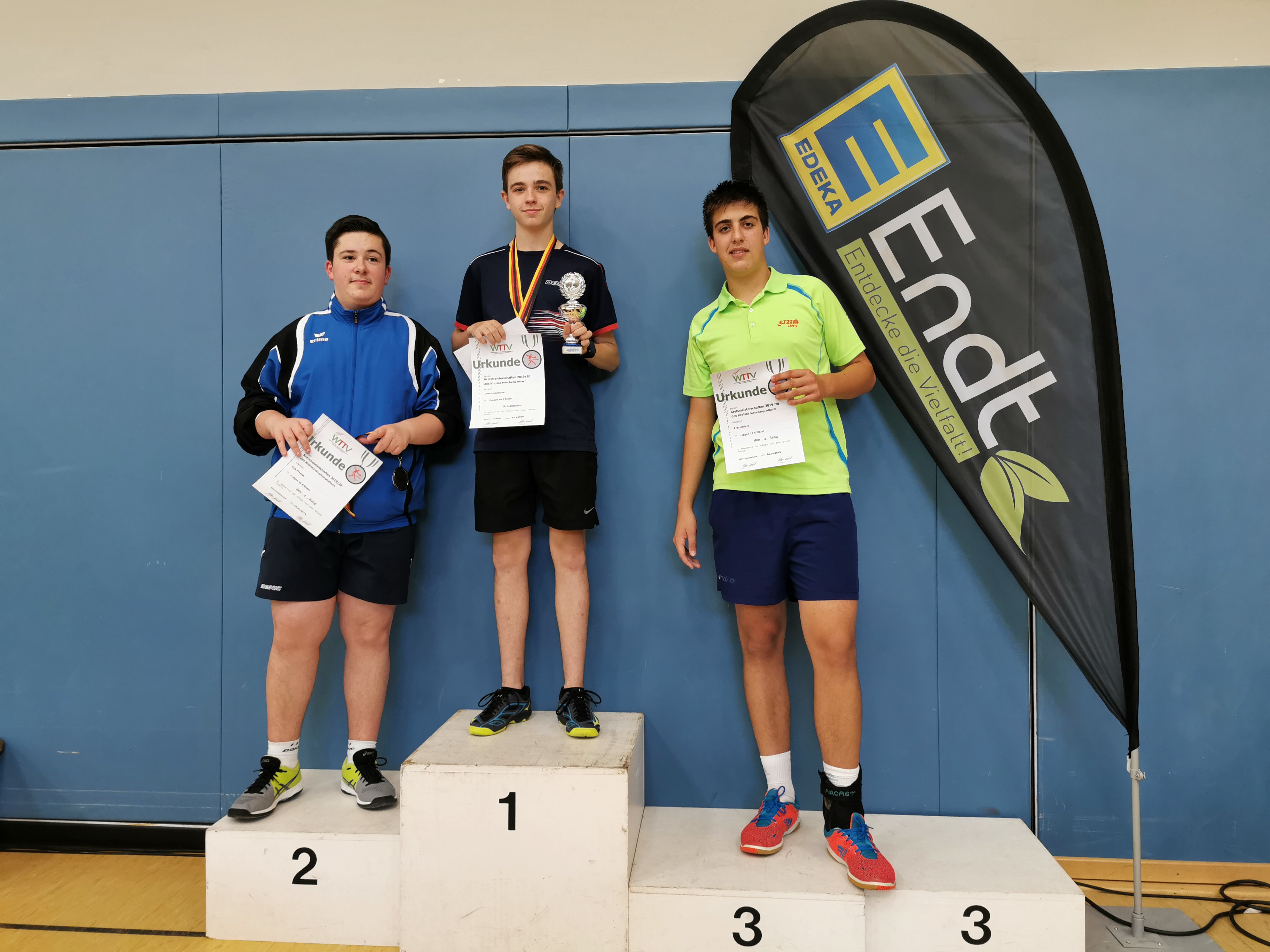 Den Namen Jens Lindemann dürfte nach diesem Kreismeisterschafts-Wochenende wohl keiner so schnell vergessen. Der Erkelenzer gewann die Jungen-A-18-Konkurrenz und die Herren-B-Konkurrenz sowie Bronze in der Herren-A-Klasse. Was für ein Wochenende: Denn Lindemann ist gerade erst 15 Jahre alt. Er war für sicher nicht nur für Marco Schiffer, Vorsitzender des Ausrichters Rheydt-Wetschewell, „der beste Spieler des Turniers“. Bei den Jungen 15 war ebenfalls ordentlich was los: 29 Meldungen gab es. Dort holte sich Junghao Cheng (VfL Borussia M’gladbach) souverän und ohne Niederlage den Pokal.