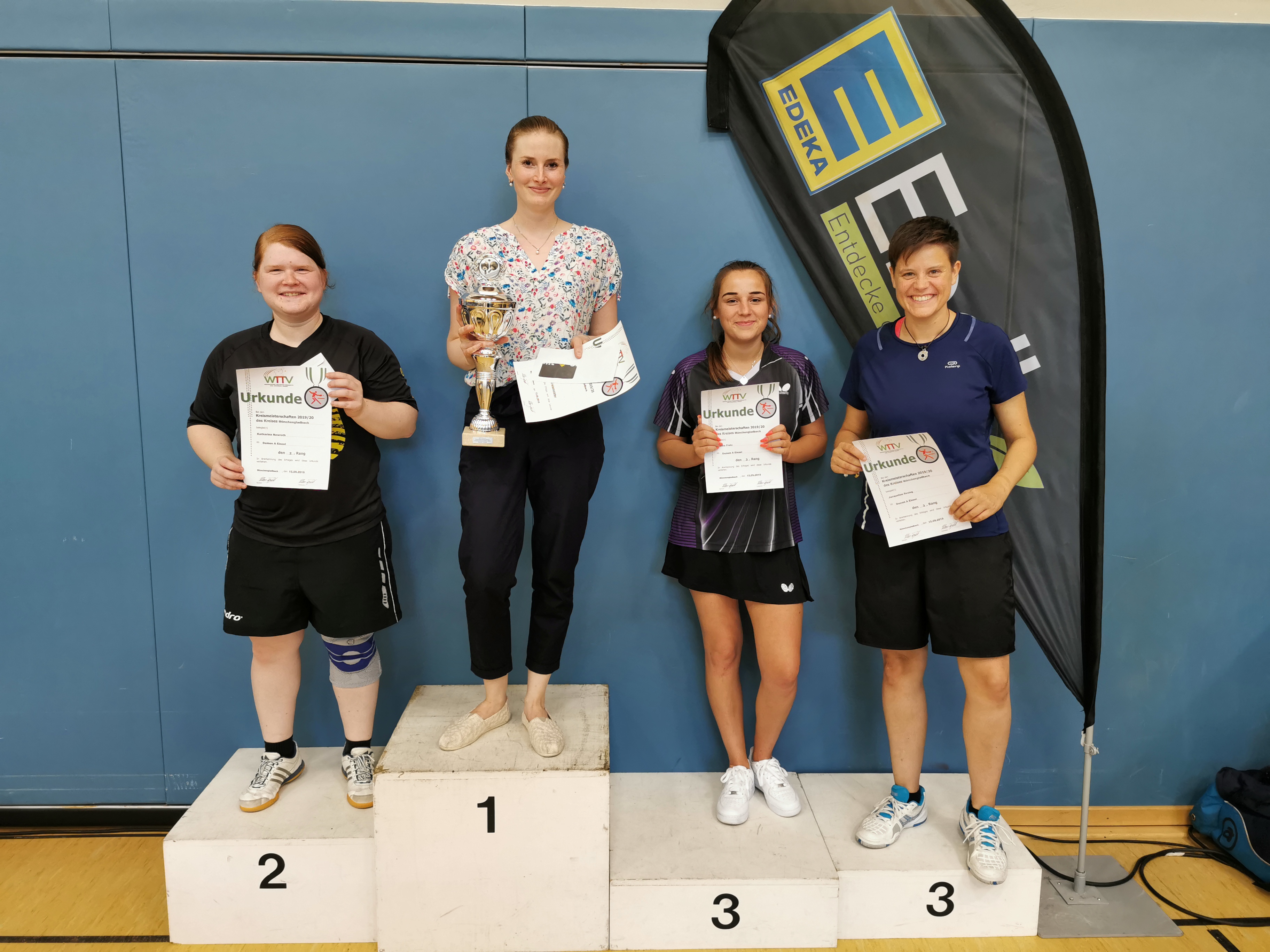 Picken musste sich im Viertelfinale verabschieden, es sollte einfach nicht sein Wochenende werden. Hoeppener hingegen steigerte sich von Spiel zu Spiel. In der Gruppe noch seinem späteren Finalgegner Michael Koninkx klar 0:3 unterlegen, nahm er im entscheidenden Moment Revanche. Dank eines 3:1-Sieges gegen den Mönchengladbacher gewann Hoeppener den Titel in der A-Klasse. Gemessen an den Teilnehmerzahlen vergangener Jahre, gab es bei den Damen A einen kleinen Positivtrend zu verzeichnen. Top-Spielerin Isabell Güdden (ASV E Süchteln) bereicherte das Turnier. Sie setzte sich denn auch souverän gegen die sechs Gegnerinnen durch. Ohne Satzverlust beendete sie das Turnier. Im Halbfinale blieb Vereinskameradin Jacqueline Resing chancenlos, im Finale gewann Güdden 3:0 gegen Katharina Nowroth aus Dülken.