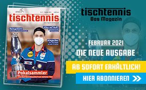 Wann wird die Tischtennissaison wieder fortgesetzt? Diese Frage beschäftigt die Spieler landauf landab, egal, ob Sie auf Kreis-, Verbands- oder Bundesebene aktiv sind. Und sie ist auch eines der großen Themen in der neuen Ausgabe von tischtennis. Welche Szenarien für die Fortführung der Spielzeit denkbar sind, lesen Sie in der Februar-Ausgabe. Weitere Schwerpunkte im Heft: Die Final-Four-Events der Damen und Herren.