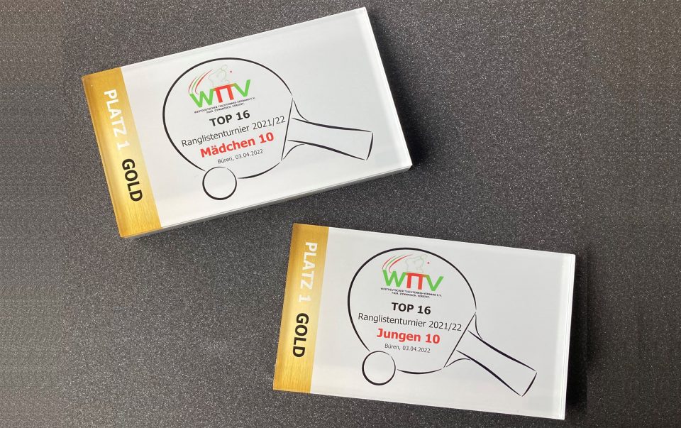 Am Sonntag, den 3.4. richtet der TV Büren das TOP 16 Ranglistenturnier Jugend 10 aus. Ab 10 Uhr spielen die besten WTTV-Nachwuchsspieler in der Sporthalle Alte Schanze, Kleffnerstr. 8 in 33142 Büren um die begehrten Pokale.