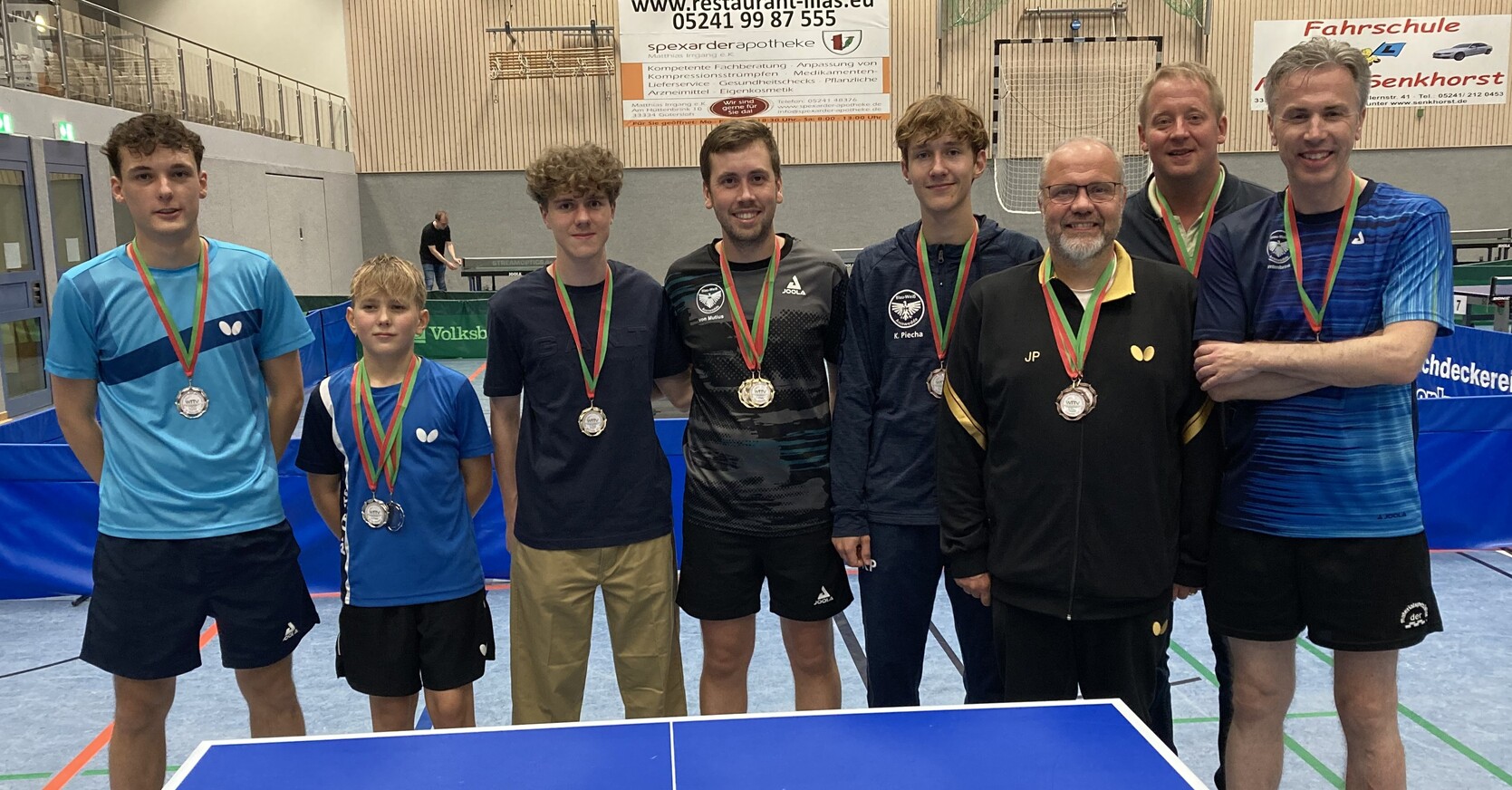 Die diesjährigen Regionaleinzelmeisterschaften für den Kreis Güterloh und den TuS Wadersloh wurden vom 26. bis zum 28. September 2025 vom SV Spexard in der Spexarder Dreifach-Sporthalle ausgerichtet. Es folgen hier die Fotos von den Siegerehrungen der Erwachsenen und den SeniorInnen (alle Fotos stammen von Ludger Terhechte):