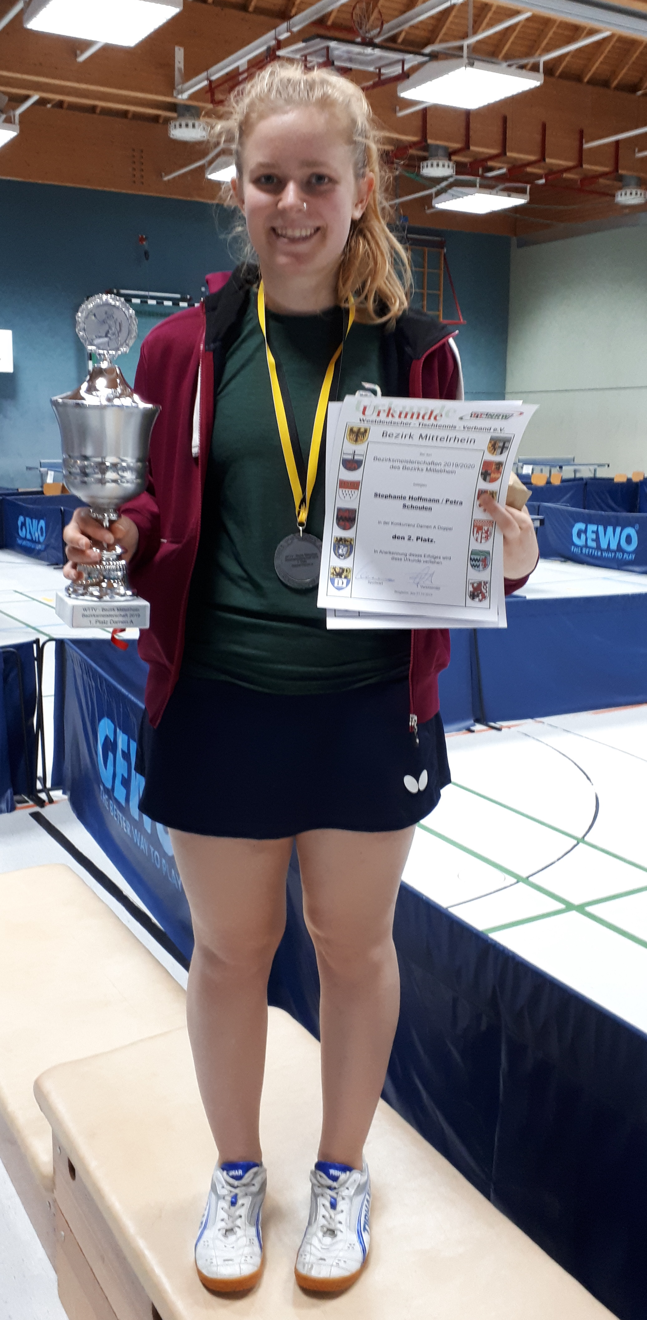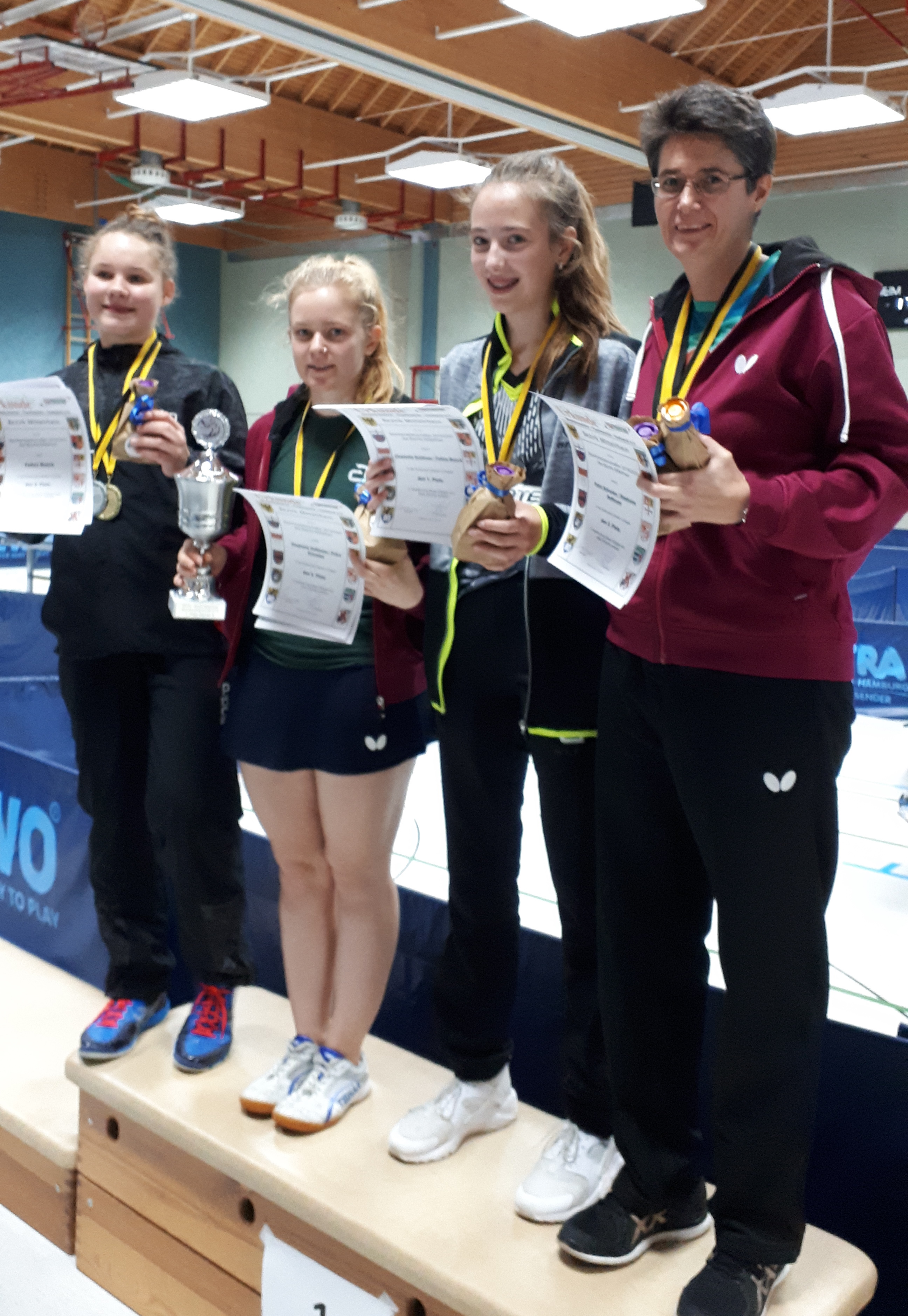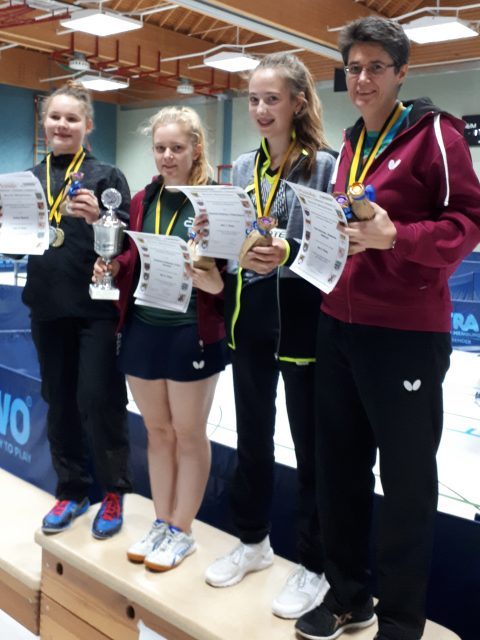 Bei den Damen A setzten sich in den vier Vorrundengruppen mit Stephanie Hoffmann, Charlotte Schönau, Petra Schoulen (alle TTC GW Fritzdorf) und Katharina Kluttig (TTC Unterbruch-Karken) alle Topgesetzten durch, wobei Schoulen bei einer Niederlage nur aufgrund des besseren Satzverhältnisses vor Felina Busch (Fortuna Bonn) lag. Im Viertelfinale behielten die drei Fritzdorferinnen problemlos jeweils mit 3:0 die Oberhand, Kluttig jedoch hatte beim 0:3 (-7, -3, -7) gegen die an Sechs eingestufte Busch keine Chance. Den Einzug ins Endspiel schafften dann die an Eins gesetzte Hoffmann und Außenseiterin Busch: Hoffmann hatte ihre Vereinskameradin Schoulen souverän mit 3:0 besiegt, Busch musste nach 2:0-Führung gegen Schönau den Ausgleich hinnehmen, hatte aber dann im fünften Satz mit 11:8 die Nase vorn. Im Finale tat sich Hoffmann nur im ersten Satz schwer: Nach 7:9-Rückstand holte sie sich den aber noch mit 11:9. Danach spulte die Fritzdorfer Nummer eins routiniert gegen die immer unkonzentrierter agierende Bonnerin ihren Part herunter und sicherte sich souverän mit 11:6 und 11:2 den Titelgewinn. Im Doppel drehte Felina Busch den Spieß um und erkämpfte sich mit Charlotte Schönau nach einem wechselnden Fünfsatzduell mit 3:2 (-7, 14, -7,9, 4) gegen die stärker eingeschätzten Stephanie Hoffmann/Petra Schoulen Platz eins.