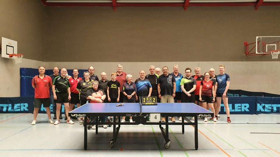 „Die Saison ist eröffnet.“ Nach den anstregenden Wochenenden zum Ende der vergangenen Saison aufgrund der zahlreichen weiterführenden Veranstaltungen nach dem Lockdown zu Jahresbeginn hieß es für viele Schiedsrichter/innen erst einmal Durchschnaufen. Umso größer war die Freude, viele Schiedsrichterkolleginnen und -kollegen am vergangenen Wochenende in Soest beim diesjährigen Schiedsrichterturnier wiederzusehen. Nach sieben Jahren fand das Turnier erstmalig wieder statt. Und es wurde ordentlich aufgetischt. Die Höhe des Startgelds spiegelte sich in der Länge der Theke wider. Düsseldorf wurde für einen Nachmittag lang seinen Ruf mit der längsten Theke der Welt los. Gerhard Baltha als Ressortleiter für Turniere sowie Sportkamerad Jörg Broch übernahmen die Organisation. Verstärkt wurde das Orga-Team von Familie Broch, so dass sich die Unparteiischen unter strenger Beobachtung durch den Oberschiedsrichter Friedrich Bongartz in ungewohnter kurzer Hose auf den Wettkampf konzentrieren konnten. Auf Schlägertests musste bei diesem Turnier verzichtet werden, weil unser Schlägertestexperte Roland Fröhlich mit der Ehrung für 20 Jahre Schiedsrichter im Dienste des WTTV überrascht wurde und keine Hand mehr frei hatte, um die digitalen Messgeräte zu bedienen.