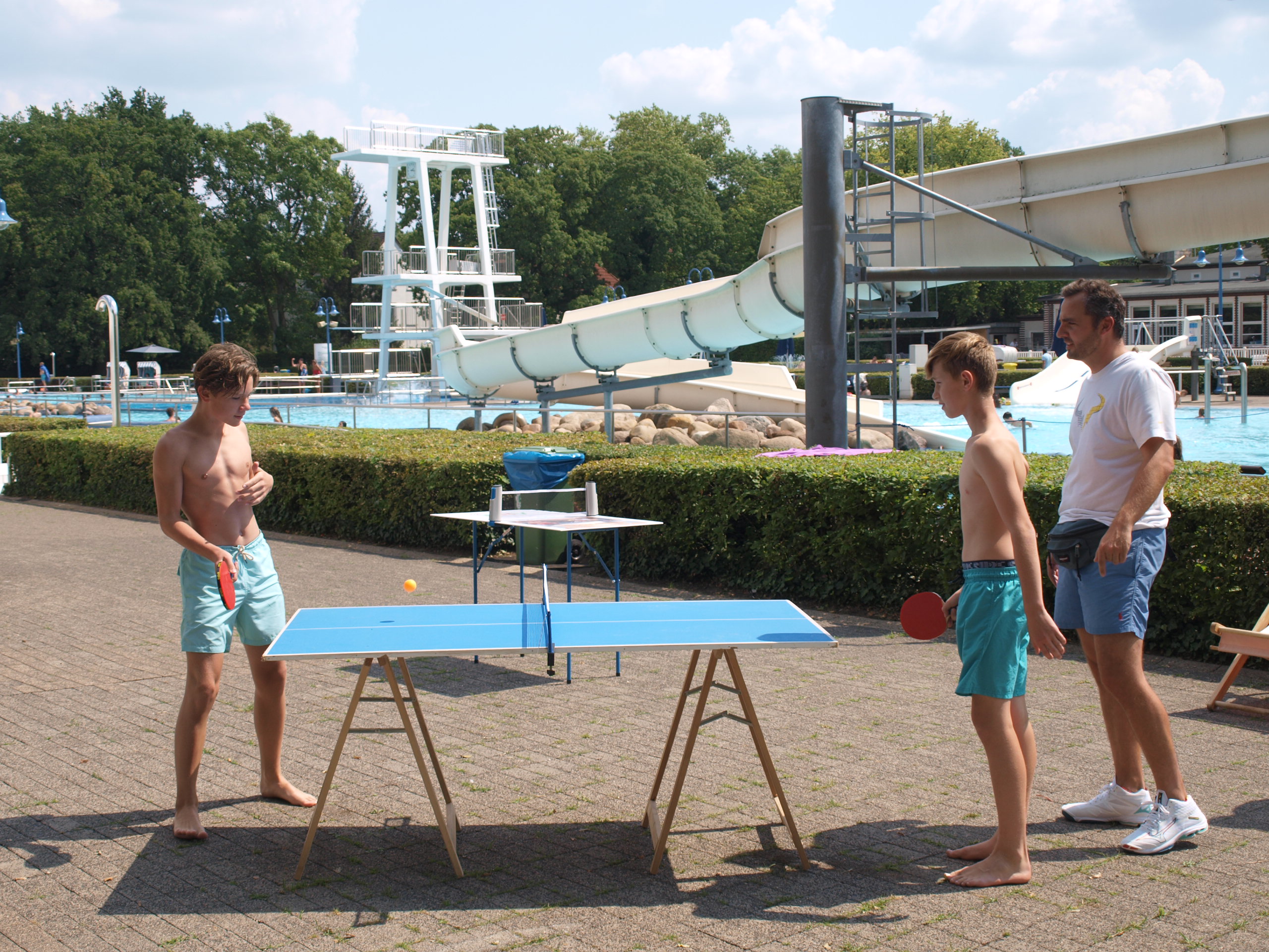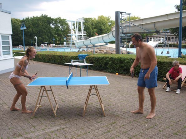 Trotz Sonnenschein und 26° war das Freibad „Wiesenbad“ in Bielefeld nur wenig besucht. Dennoch konnte die erste Austragung des WTTV-Schwimmbad-Cups an einem Steintisch durch den TPSV Bielefeld erfolgreich durchgeführt werden. In drei Vorrunden konnten sich die jeweils beiden ersten für die Finalrunde qualifizieren, bei der um kleine Preise gespielt wurde.