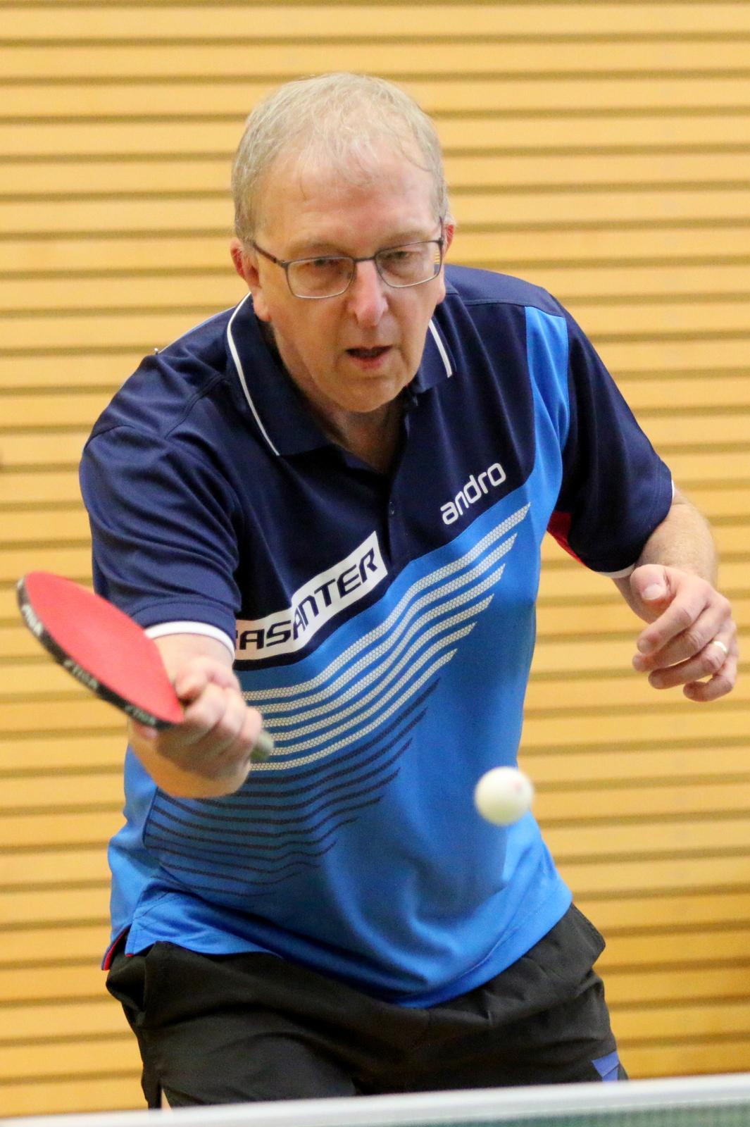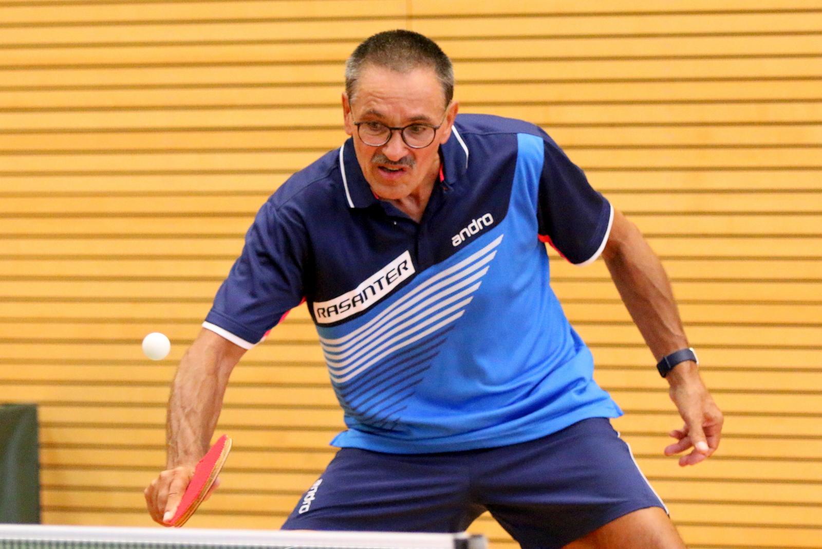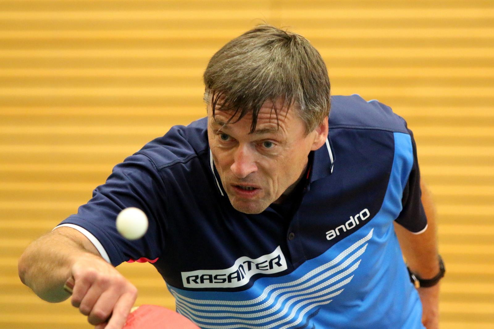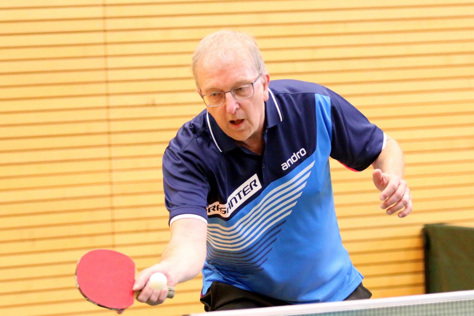 Schon im ersten Spiel gab es für die Zuschauer einen Leckerbissen. In einem technisch hochklassigen Spiel standen sich Seyffart und Nieswand gegenüber. Manfred Nieswand platzierte seinen Gegner in den ersten beiden Sätzen immer wieder klar aus und gewann die Sätze klar. Beim Stand von 10:10 im dritten Satz war der Sieg greifbar nah. Doch Seyffart konnte sich in den vierten Satz retten und dann die nächsten beiden Sätze siegreich gestalten. Hellmann mit einem klaren Sieg und Karmainski mit einer Niederlage gegen Beck stellten das Ergebnis auf 1:2. Im wichtigen Doppel traten Seyffart/Beck gegen Nieswand/Becker an. Auch in diesem Spiel blieb das Duo Nieswand/Becker wie in allen Spielen vorher unbesiegt. Nach einem klaren Sieg von Nieswand gegen Drescher rechneten schon alle mit einem Showdown im letzten Spiel mit Beck und Hellmann. Mit einer überragenden kämpferischen Leistung siegte jedoch vorher Karmainski gegen den starken Seyffart mit 3:0 und setzte damit den Schlusspunkt unter den Gewinn des Deutschlandpokals.