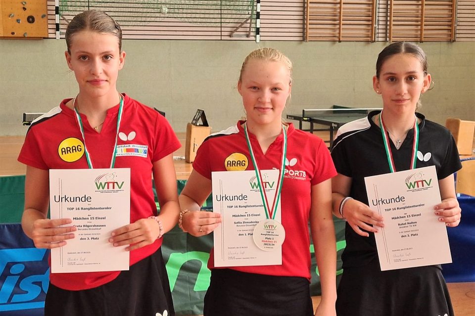 Der TuS Wadersloh richtete am Sonntag das Top24/16 Ranglistenturnier der Jugend 15 aus. In der Mädchenkonkurrenz entwickelte sich ein packender Dreikampf mit einem sehr knappen Ergebnis. Nachdem Rahel Nolten (Anrather TK) und Greta Bögershausen (Borussia Düsseldorf) in der Vorrunde eine reine Weste behielten, trafen sie in der Endrunde auf die jeweils Zweitplatzierten der Vorrundengruppen, Sofiia Zhmudenko (Borussia Düsseldorf) und Melina Specka (TV Büren), die mit der einen Niederlage gegen die Gruppensieger in die Finalrunde einzogen.