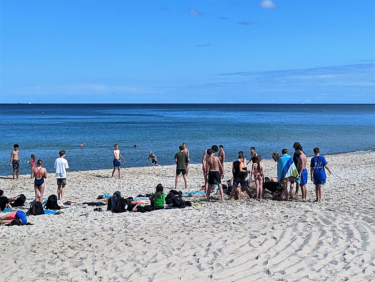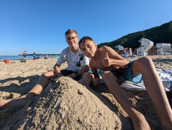 Am Donnerstag stand dann der erste Besuch des Strandes an. Mäßig warmes Wasser und fehlende Schaufeln und Eimer hinderten einige Jungs (und auch den ein oder anderen Betreuenden) nicht daran eine gewaltige Sandburg zu bauen, die dem Wasser ganze zwei Minuten standhielt! Zumindest der Auftrag für den nächsten Strandbesuch war klar: Eimer und Schaufeln der anderen Strandbesucher „ausleihen“ und mit viel Glück auch wieder heil zurückbringen.