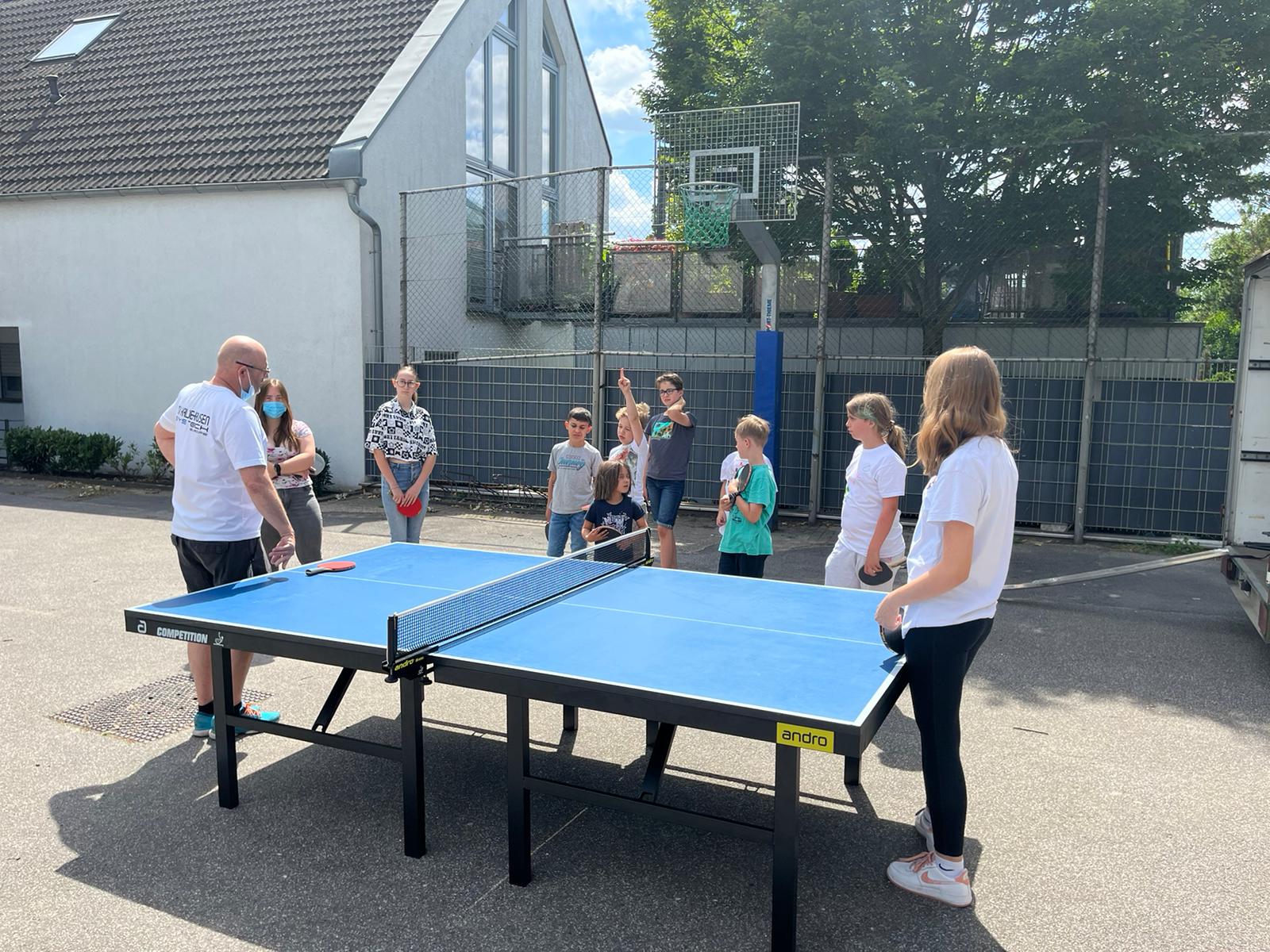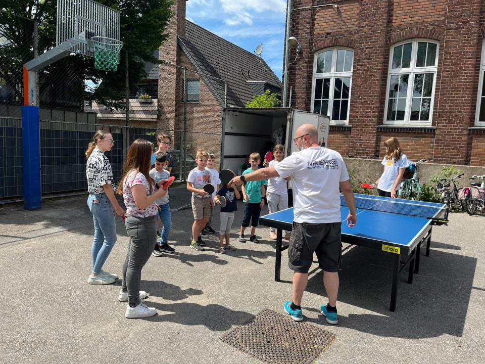 In Kooperation mit dem TV Kaldenhausen 05 fand in diesen Sommerferien ein Schnupperkurs im Jugendzentrum in Rumeln Kaldenhausen statt. In dem Duisburger Stadtteil durften, unter Anleitung der Vereinstrainer, von Klein bis Groß alle den Sport am weißen Ball ausprobieren. Nachdem der TV Kaldenhausen in den Osterferien eine ähnliche Aktion in der Turnhalle absolvierte, war für uns klar, dass wir diese Kooperation im Zeichen der Integration unterstützen. Mit Hilfe des WTTV-Anhängers vor Ort war vieles möglich und die Kinder durften sich in allem ausprobieren. Die begeisterten Teilnehmer/innen konnten das TT-Sportabzeichen ablegen, sowie gegen den Ballroboter spielen.
