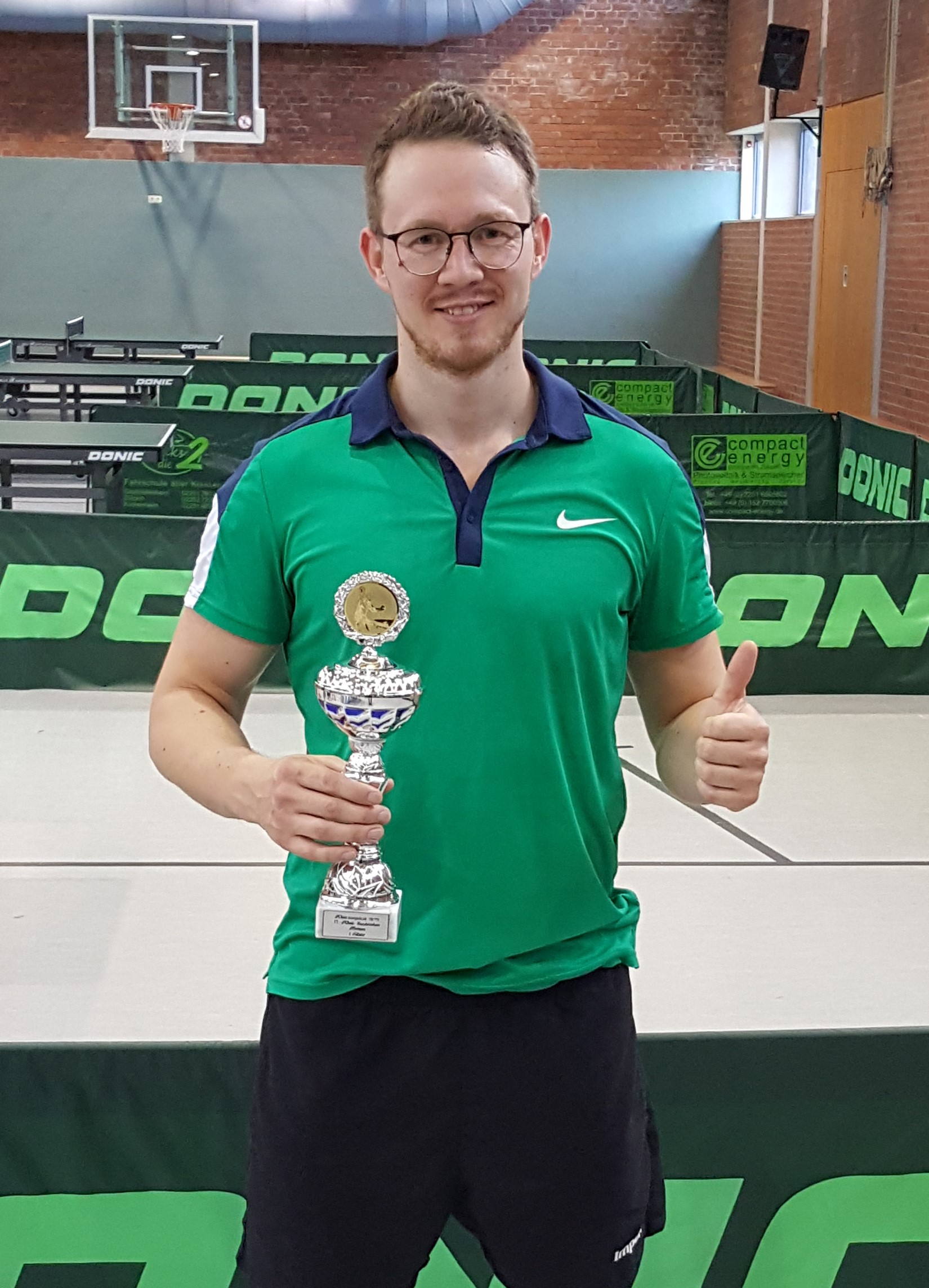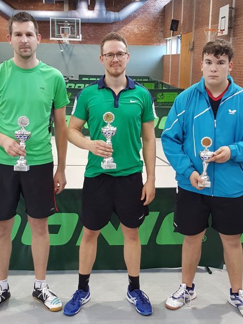 Bei den Herren musste der Favorit Daniel Stein vom TTC Lechenich seine Teilnahme absagen. Für ihn rückte Tim Kaminski noch in das Teilnehmerfeld und gewann das spannende Turnier vor dem Überraschungszweiten Tom Kreuzer vom TV Kall und Sebastian Schog von der SG Erftstadt. Auf den weiteren Plätzen folgten Thomas Müller (TTC Lechenich), Adrian Azemi (SG Erftstadt) und Fabian Gilli (TTC Lechenich).
