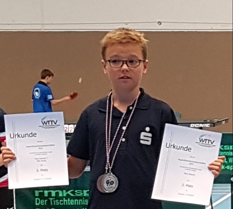 Bei den diesjährigen Tischtennis Jugend-Bezirksmeisterschaften in Brakel konnte sich Paul Kickert (VfL Oldentrup) eine Silbermedaille im Einzel der Jungen 11 sichern. Im Doppel holte er zusammen mit seinem Partner Nils Faust (TTC Enger) eine Bronzemedaille.