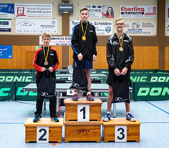 Bei den Jungen starteten neben dem an Nr. 1 gesetzten Tobias Sältzer (TV Refrath), Andre Bertelsmeier (Westfalia Rhynern) , Wim Verdonschot (TTC Hagen), Friedrich Kühn von Burgsdorff (Post SV Gütersloh), László Mohácsy (Borussia Düsseldorf) und Emilo Schulz (TTC Lövenich). „Nachrutschen“ konnte noch Noah Hersel (TTG Niederkassel).