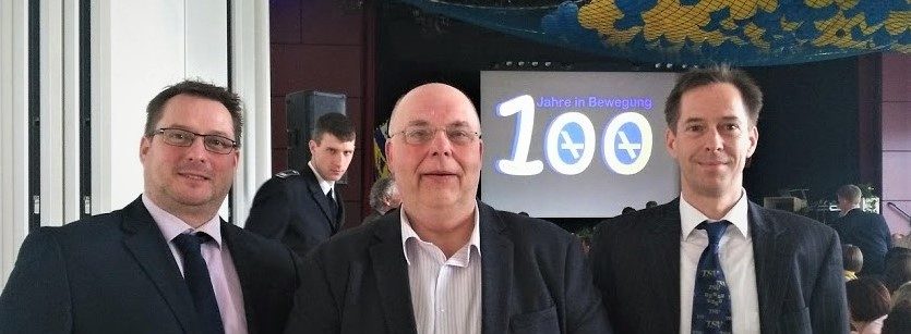Zu seinem 100jährigen Bestehen setzte sich der TSV Weeze glänzend ins Rampenlicht. Bei einem Festakt im restlos ausverkauften Bürgerhaus sollte die Schar der Gratulanten nicht abreissen. Selbstverständlich konnte Abteilungsleiter Marcus Demes (re.) auch die Glückwünsche des Tischtennis-Kreises Niederrhein entgegennehmen. Mit vielen Dokumenten in Form von Fotos und Videos wurde die bewegte Vergangenenheit der Blau-Gelben noch einmal lebendig.