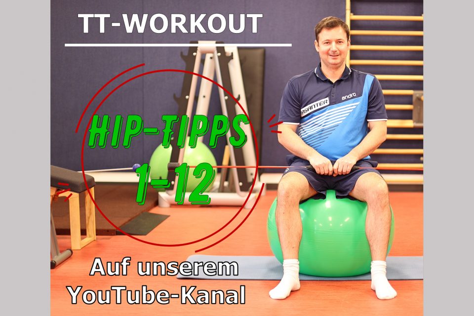 In den letzten Wochen haben wir Ihnen zweimal die Woche eine Folge des TT-Workouts der Reihe Hip-Tipps zur Verfügung gestellt. Damit wir die Reihe noch vor den Weihnachtsferien abschließen können, haben wir nun alle 12 Folgen mit unserem Verbandstrainer Johannes Dimmig veröffentlicht. Die einzelnen Folgen bauen aufeinander auf. Suchen Sie sich einfach Ihre Lieblingsübungen heraus.
