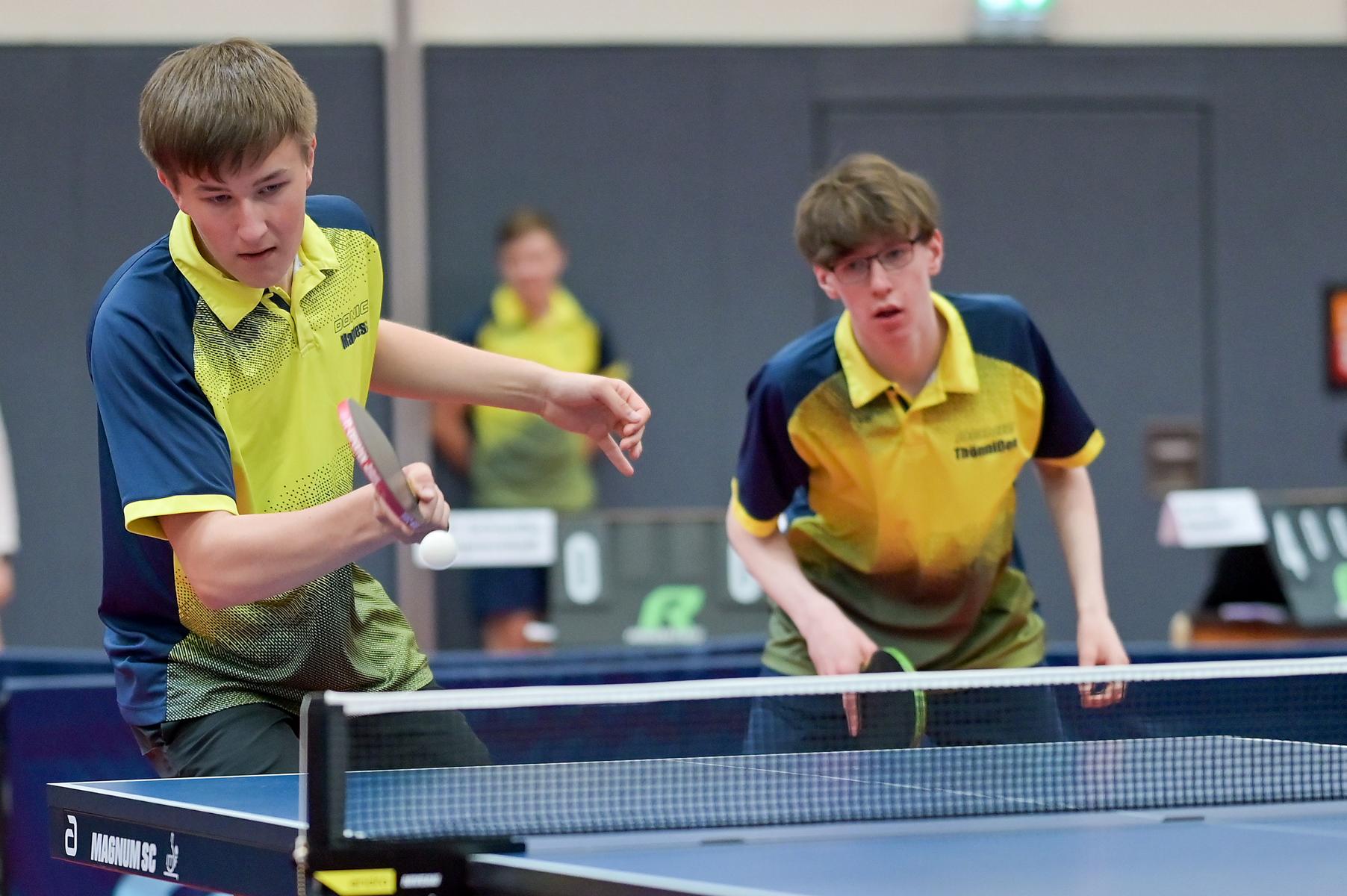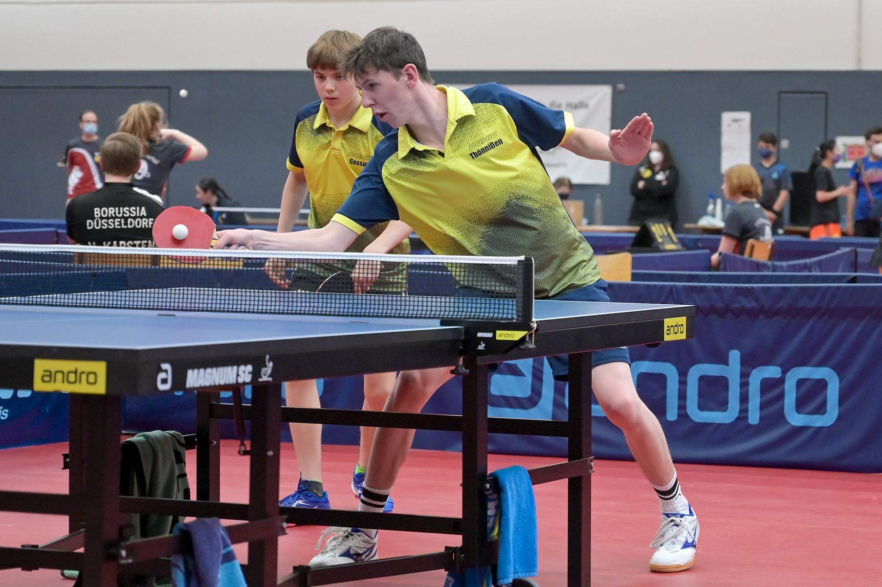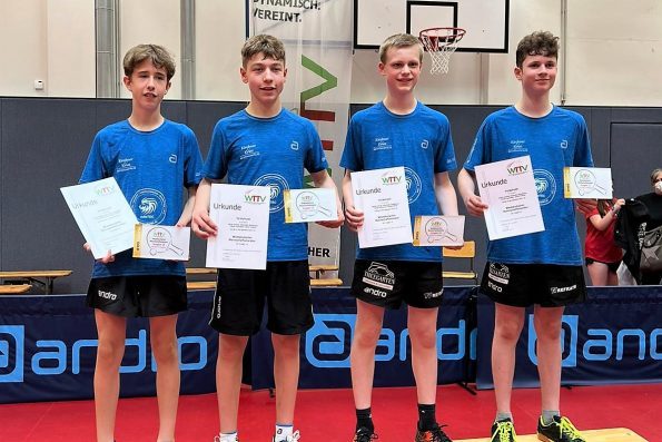Bei den Jungen 18 mussten am Ende die Sätze über Sieg oder Niederlage entscheiden. Im Endspiel um die Westdeutsche Meisterschaft standen sich TTF Bönen und Borussia Düsseldorf gegenüber. Bönen ging in diesem hochklassigen Spiel zwischenzeitlich mit 5:3 in Führung. Doch die Düsseldorfer konnten die letzten beiden Partien in diesem Match für sich entscheiden, so dass es am Ende 5:5 nach Spielen stand. Da das Team aus Bönen in dem fast dreistündigen Match sechs Sätze mehr für sich entscheiden konnten, holten sich Toni-Ivano Ramljak, Tyson Tan Hasse, Marius Goebel, Milad Osmani den Meistertitel.