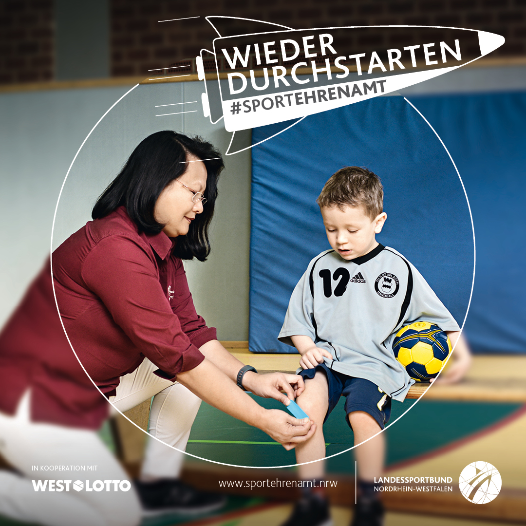 Aufatmen heißt es seit einigen Wochen für den organisierten Sport. Nach einer langen Durststrecke können Sportvereine in NRW endlich wieder durchstarten. Zu diesem Anlass hat der Landessportbund NRW die Aktion „WIEDER DURCHSTARTEN“ ins Leben gerufen. Mit der Aktion möchte der LSB Vereine motivieren und gleichzeitig befähigen, den Neustart nach dem Stillstand mit acht starken Bildmotiven zu bewerben.