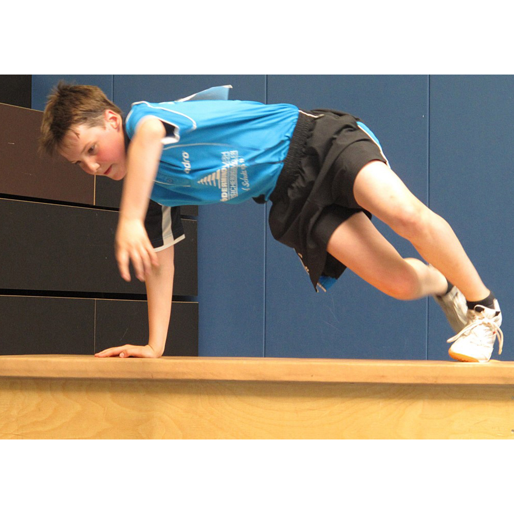 Turnkästen und Kastenrahmen (gehören i.d.R. zur Ausrüstung von Sporthallen), Slalomstangen, Basketball oder Fußball, Tischtennis-Tische, Netze, Banden, Tischtennisbälle, Stoppuhr