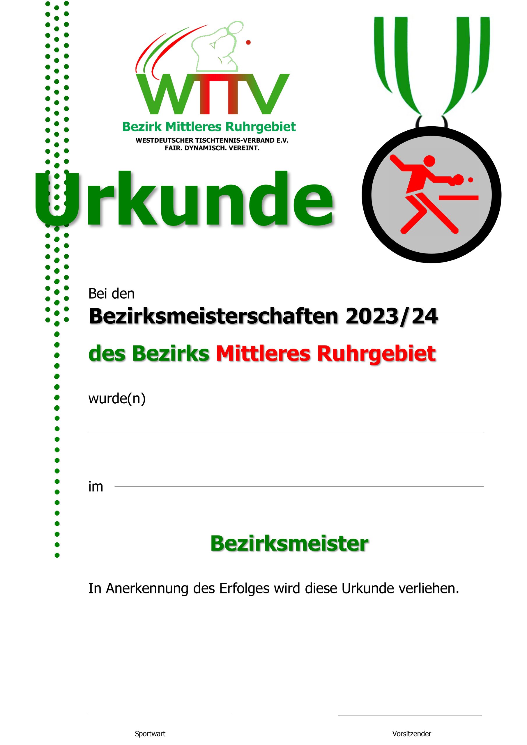 Diese Urkunden sind im Layout aller 13 Bezirke des WTTV lieferbar (Bitte bei Bestellung mit angeben):